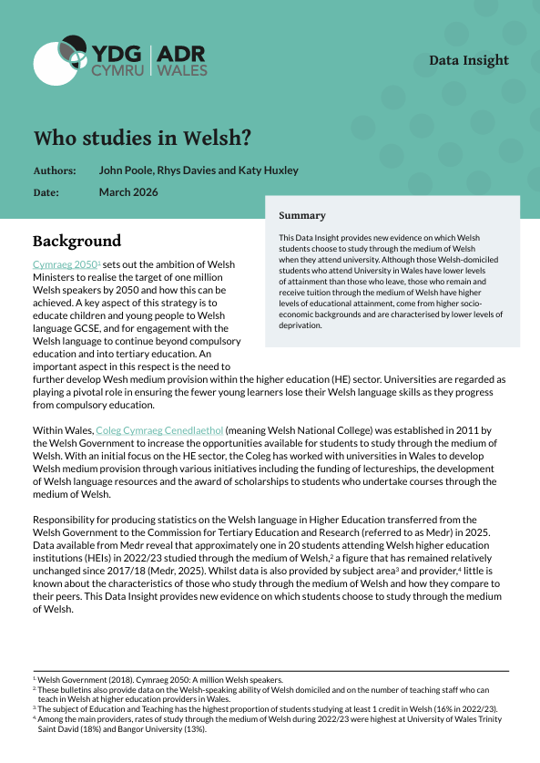 The Census is used as the key source of data for tracking progress towards the Cymraeg 2050 target of reaching one million Welsh speakers by 2050. Different data sources, however, show very different levels of Welsh language skills. This Data Insight demonstrates the contribution that administrative data can make in terms of validating alternative measures…